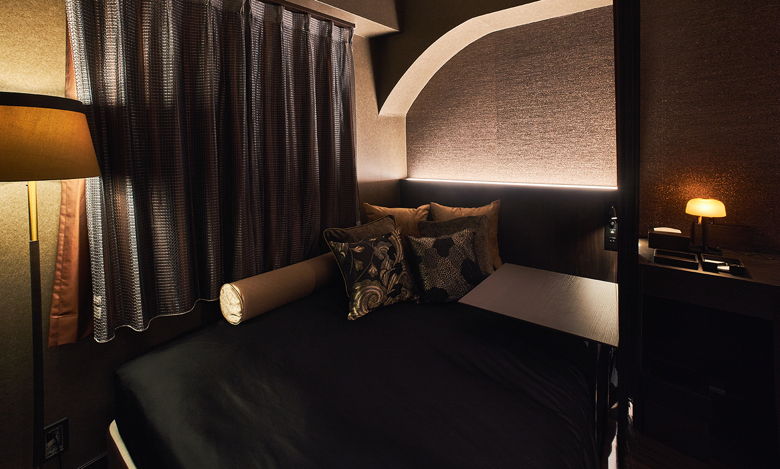 A designer room where soft lighting and carefully selected interiors come together, evoking the elegant harmony. Relax in the calm atmosphere, enjoy your own personal style, and savor a truly special moment.