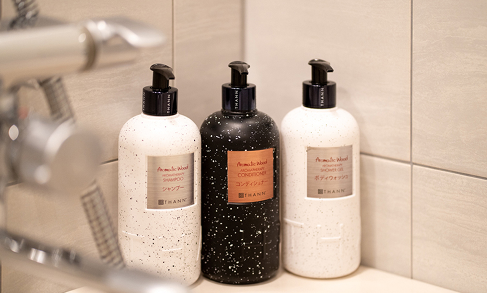A compact room with plenty of drinks included in the room, including 3 types of Japanese sake from Kikawa Brewery which is one of our group companies.